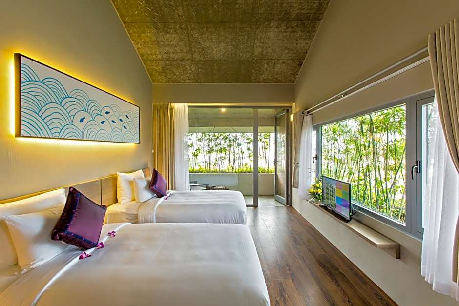 Guests at the Mulberry Collection Silk Eco hotel can spend their time enjoying various leisure amenities. They can relax by the outdoor swimming pool which has a shallow end. For dining options, guests can visit the on-site restaurants Botanic and Euphoria Bar & Cafe offering Vietnamese, Local, and European cuisine. Families can indulge in the kid-friendly buffet and kids' meals provided. Those seeking relaxation can visit the spa, sauna, or the private beach area. Active guests can also utilize water sports facilities or play tennis. Moreover, the hotel features a fitness center, sun deck, and garden for guests to enjoy. Lastly, they can unwind by watching live music performances at the hotel bar in a Family-Friendly, Traditional, Modern, or Romantic ambiance.