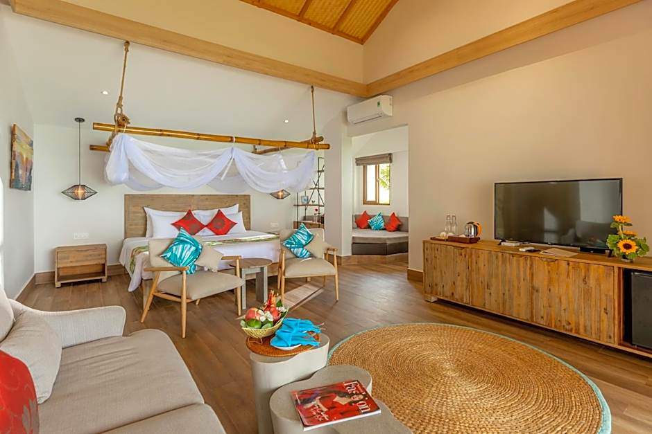 This bungalow consists of 1 living room, 1 separate bedroom and 1 bathroom with a shower and free toiletries. The air-conditioned bungalow provides a flat-screen TV with cable channels, soundproof walls, a mini-bar, a seating area as well as sea views. The unit offers 2 beds.