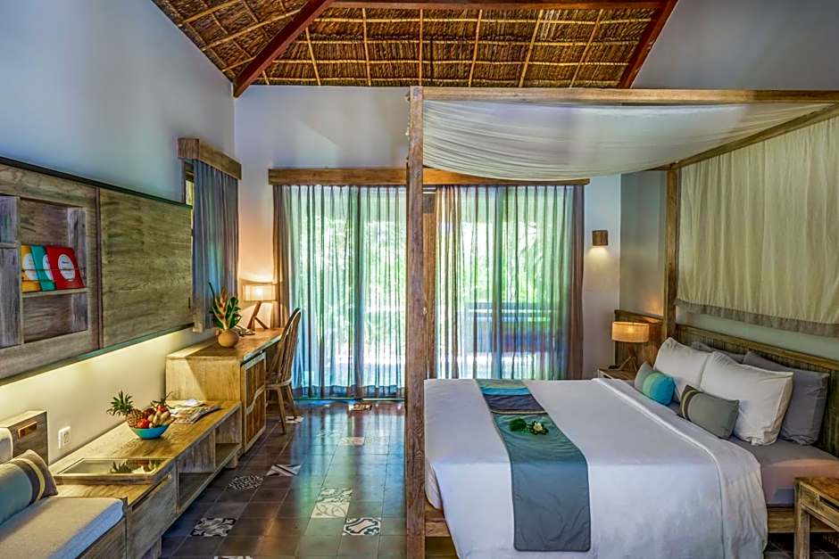 Spacious room feature a large private terrace overlooking the tropical gardens, outdoor furniture and air conditioning. A flat-screen TV with cable channel, mini-bar and an electric kettle are provided. Private bathroom is equipped with outdoor shower facility, free toiletries and bathrobes.