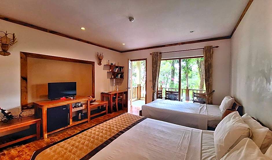 Sitting just steps away from the shore, this bungalow is fitted with a balcony with views of the lush greenery. It comes with a mini-bar, electric kettle and a flat-screen TV.