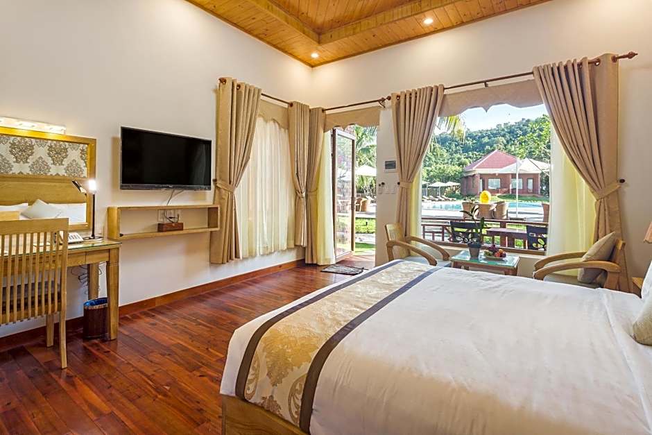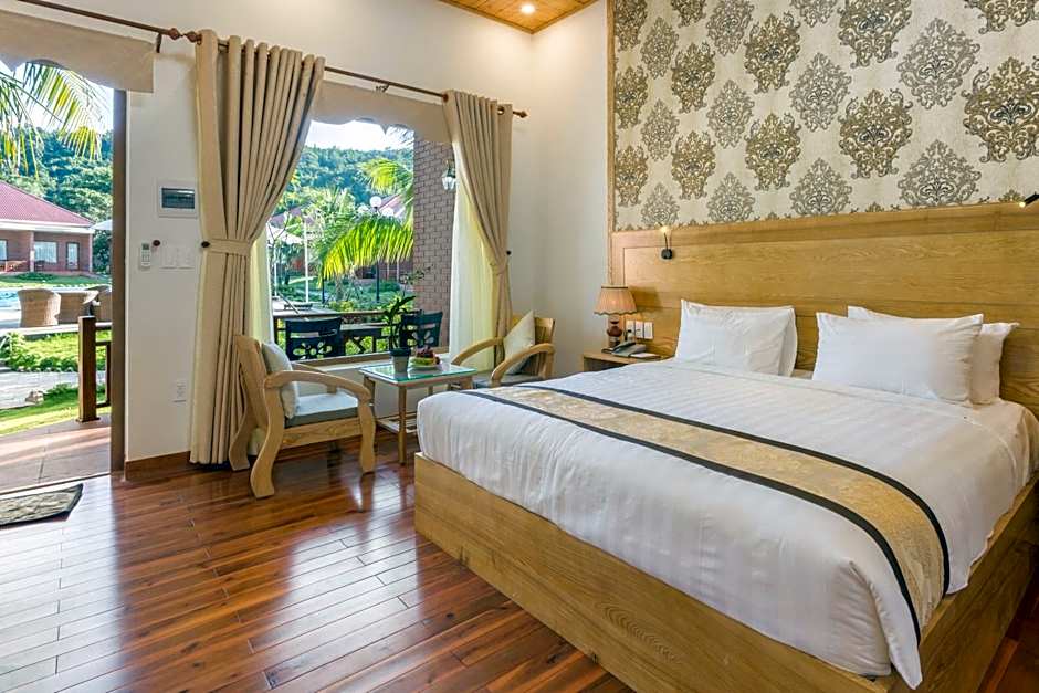 Guests at the Gold Coast Phu Quoc Beach Resort can enjoy various leisure amenities during their stay. They can savor delicious meals at the on-site restaurant, The Wooden House Restaurant, offering a mix of Chinese, Pizza, Seafood, Thai, Vietnamese, Local, and Asian cuisines in a family-friendly and traditional setting. Relaxation awaits at the outdoor swimming pool, with a separate kids' pool for younger guests. The waterslide adds an extra dose of fun for all ages. Those seeking ultimate relaxation can indulge in spa treatments available at the resort. For those looking for more adventurous activities, they can take advantage of the nearby golf course. Whether lounging at the beach, enjoying stunning mountain or garden views, or unwinding on the sun deck, guests have a variety of options to make their stay memorable.
