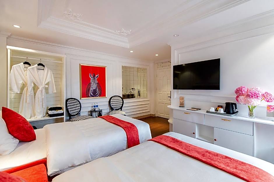 Bed configurations vary by type: the Room with Double or Twin Beds features a bed that can be arranged as either a double or a twin, while other room types generally accommodate two adults.