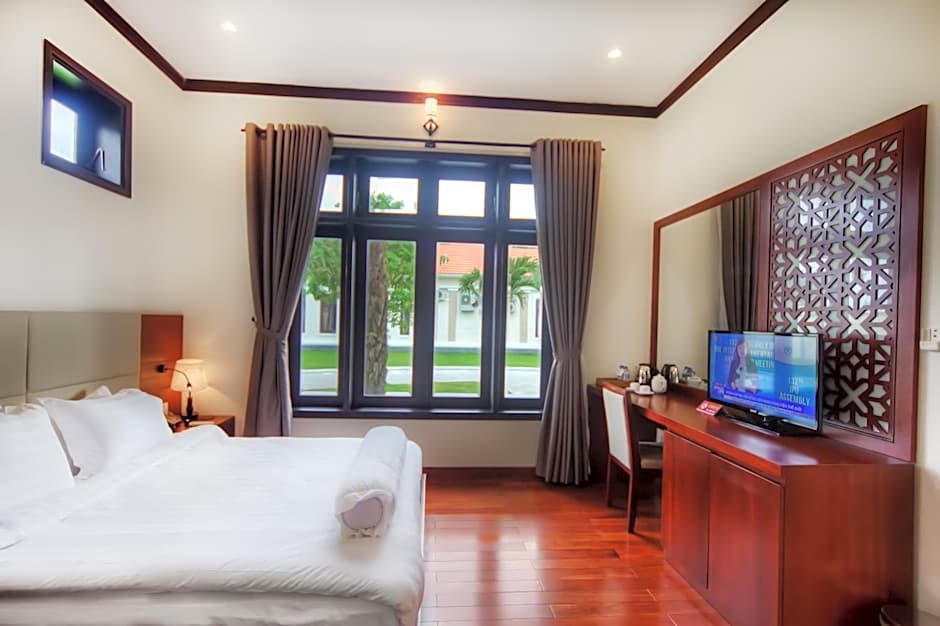 Two pools invite relaxation: a private pool for a touch of exclusivity and a free outdoor pool for a refreshing dip, available year-round. The sun deck, terrace, garden, and a balcony with river or garden views offer plenty of scenic spots to unwind after a day of exploring Tam Kỳ.