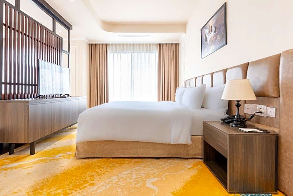 Nestled in the charming town of Thanh Phước, La Vela Hue Hotel offers a luxurious escape just over 10 kilometers from the vibrant city center of Hue, Vietnam. Starting at a friendly minimum price, this 5-star haven boasts stunning mountain views and a range of delightful amenities, ensuring your stay is both relaxing and exciting. Whether you're lounging by the outdoor swimming pool, indulging in a spa treatment, or soaking up the sun on the beach chairs, every detail is designed to enhance your experience.