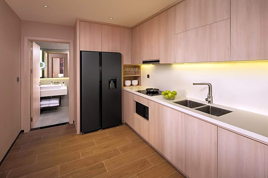 This spacious apartment consists of 1 living room, 1 separate bedroom and 1 bathroom with a hairdryer and free toiletries. Guests can make meals in the fully equipped kitchenette that features a refrigerator, kitchenware and a microwave. The apartment is furnished with a desk and a seating area and provides air conditioning and a safe deposit box. The unit offers 1 bed.