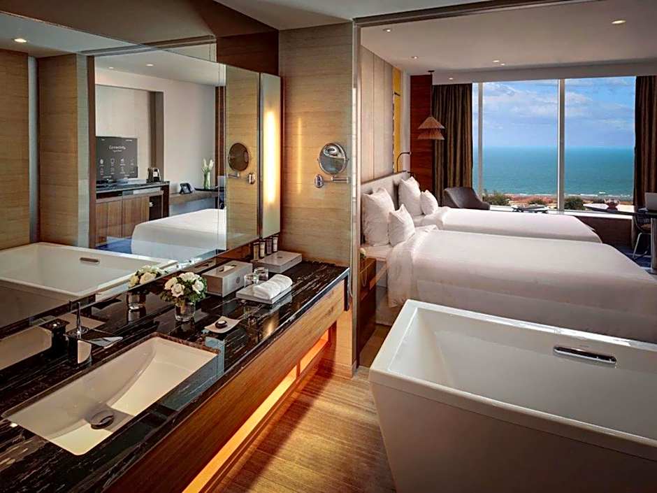 Mit 398 begeisterten Bewertungen ist dieses Hotel bei Reisenden wegen seiner erstklassigen Ausstattung beliebt, darunter kostenloses WLAN, Zimmerservice und Privatparkplätze. Das aufmerksame 24-Stunden-Empfangsteam steht Ihnen zur Verfügung, um Ihren Aufenthalt reibungslos und angenehm zu gestalten. Ob geschäftlich oder privat unterwegs: Pullman Vung Tau ist die perfekte Wahl, um die warme vietnamesische Sonne und die Ruhe des Küstenlebens zu genießen!