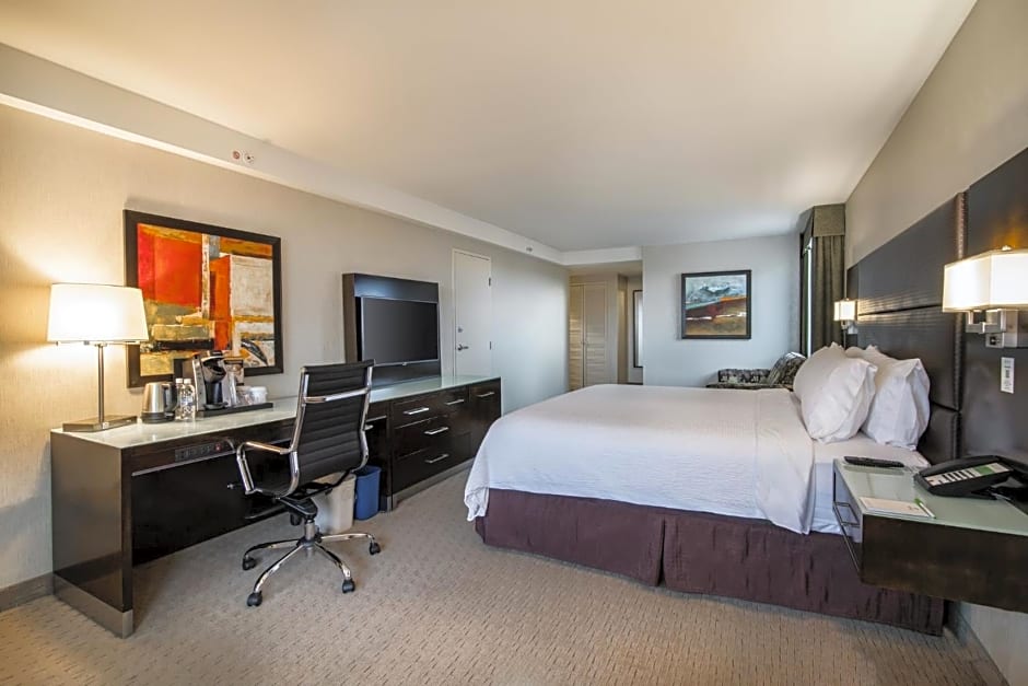 餐飲方面,Stages Bistro and Lounge 供應美式料理,並設有酒吧適合輕鬆夜晚。戶外空間包括日光甲板與露台,是早晨喝杯咖啡或觀賞夕陽與市容的理想地點。為了活動安排順利,飯店備有 24 小時櫃檯、電梯與兒童餐。